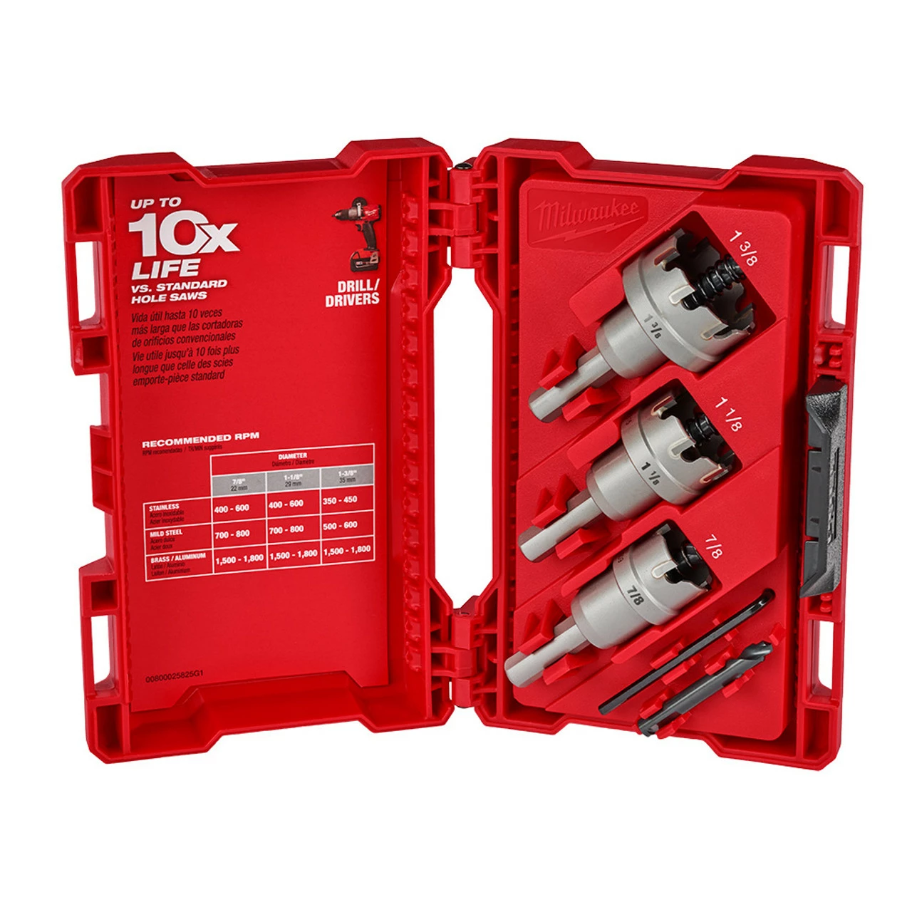 - Includes: 7/8, 1-1/8, 1-3/8 in. Cutters, Hex Key, and One Additional Pilot Bit